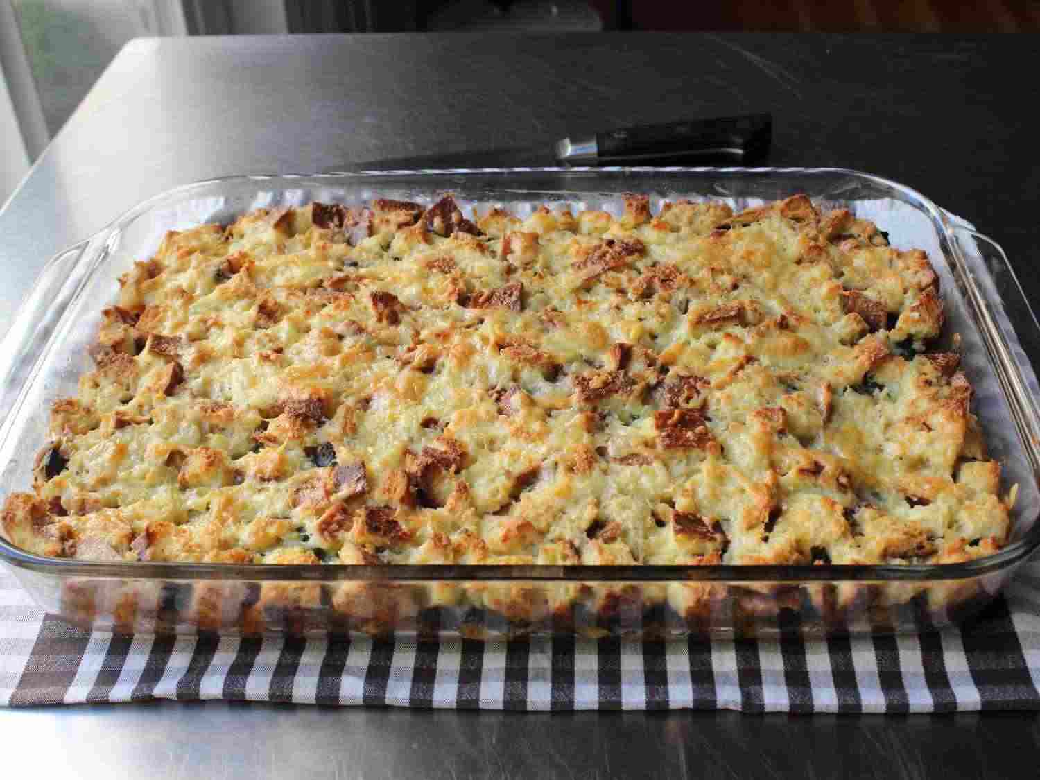 Indulge in a delightful Bacon, Cheddar, and Spinach Strata.