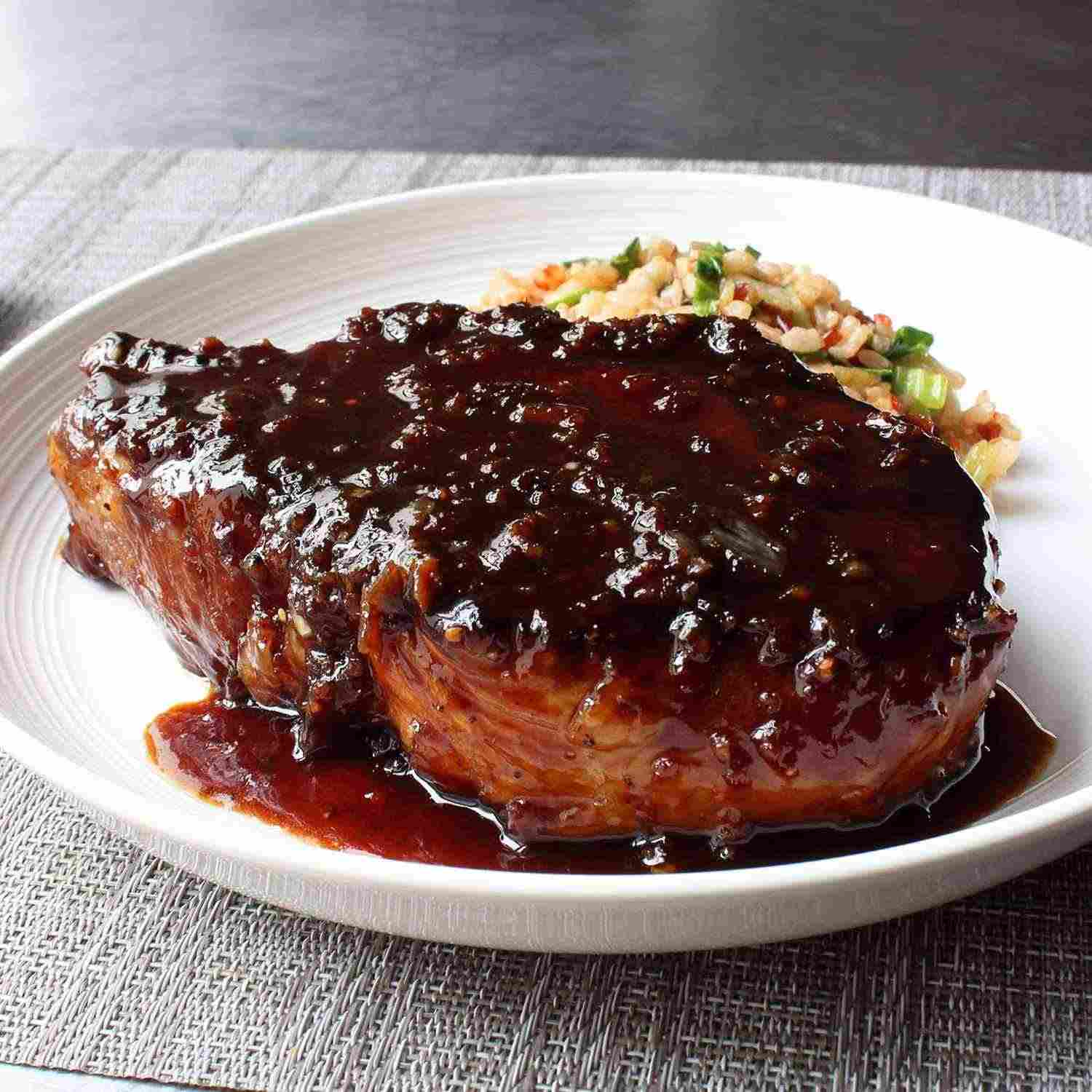 - Step 5:Pour the marinade into the skillet. Raise heat to medium-high. Cook until marinade is reduced and sticky, 3 to 5 minutes. Return pork chops and any accumulated juices to the skillet.