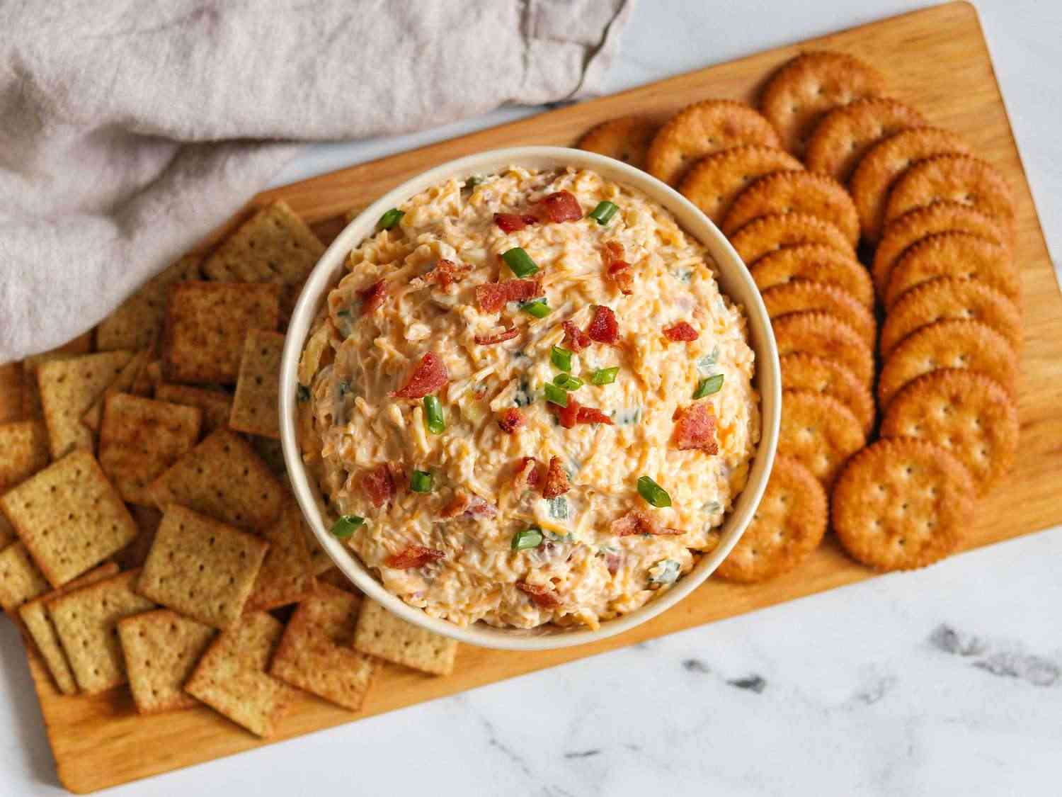 Formerly known as 'Neiman Marcus dip,' this million dollar dip tastes just like it sounds. I've had more than a few cheesy dips in my day, but this is by far the richest and most addictive one yet. And it's much cheaper than the name suggests! Served with crackers and garnished with green onions and bacon, this dip is sure to be a huge hit at your next party.